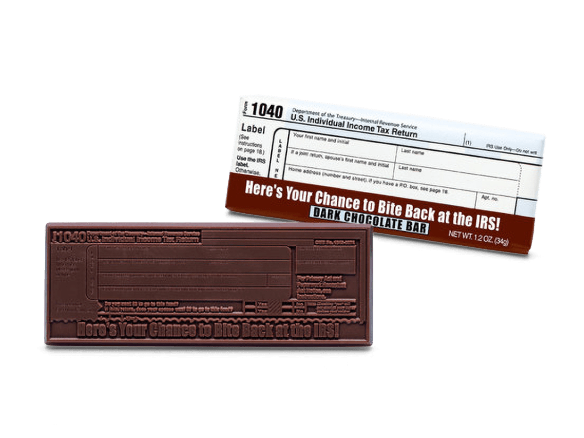 Indulge in bold, premium dark chocolate with a witty IRS 1040 design. A sophisticated, and fun gift for finance pros and tax enthusiasts alike!