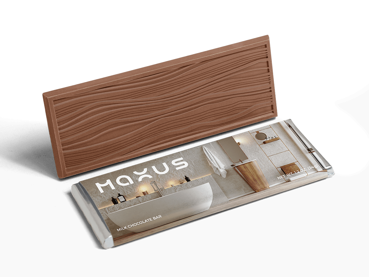 Designed for maximum impact fast, our 2″ x 5″ quick ship wrapper bar features a detailed stock design engraved in rich, premium milk chocolate wrapped in a full custom printed sleeve with your logo or design. Crafted to showcase your brand in style, its perfect for events, giveaways, and last-minute client gifts, this sweet little bar delivers big impact on a tight timeline.