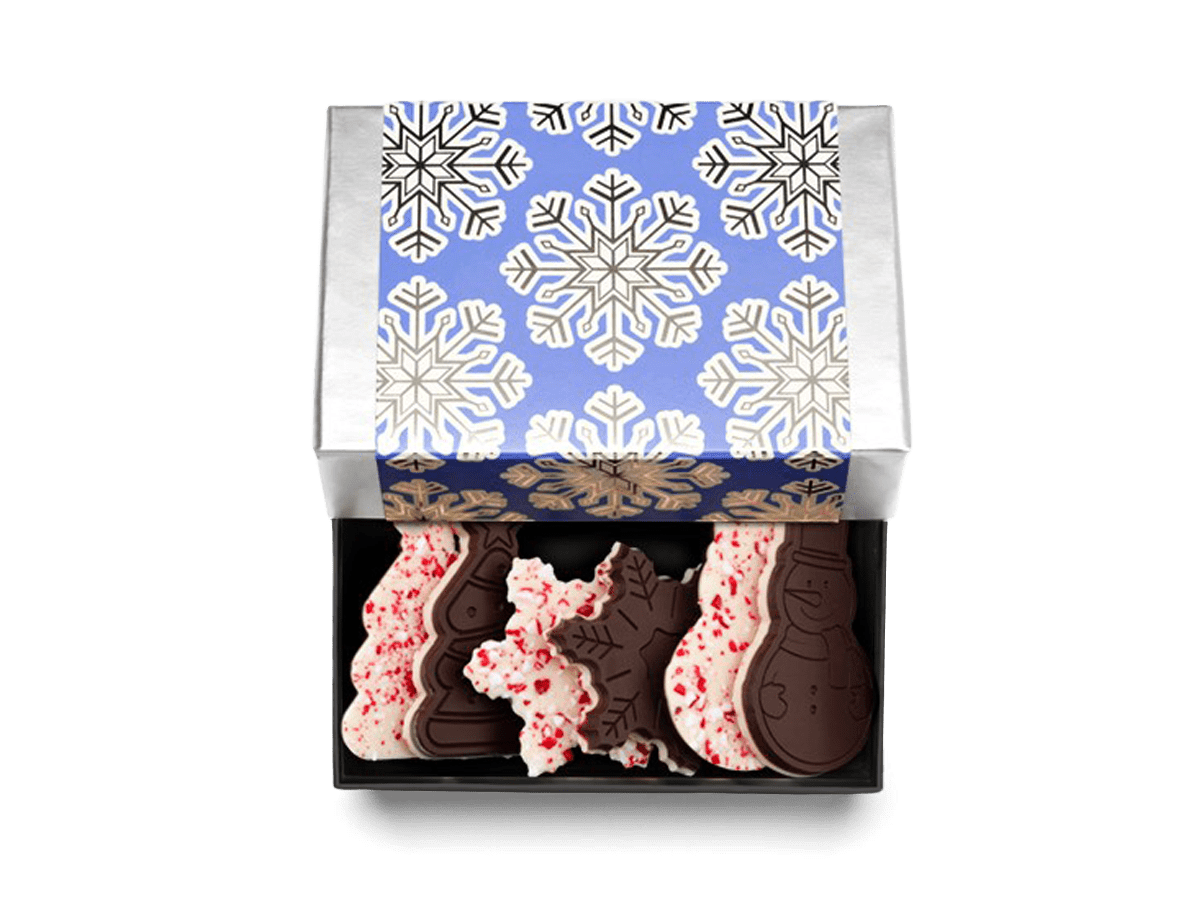 Indulge in the festive spirit with our Snowflake 6-Piece Peppermint Bark Gift Set! This exquisite holiday box features six shimmering snowflake-shaped bark pieces, each layered with rich dark and creamy white chocolate, topped with crisp peppermint candy. Housed in an elegant, ready-to-gift box, its the perfect sweet gesture for loved ones, clients, or colleagues this season.