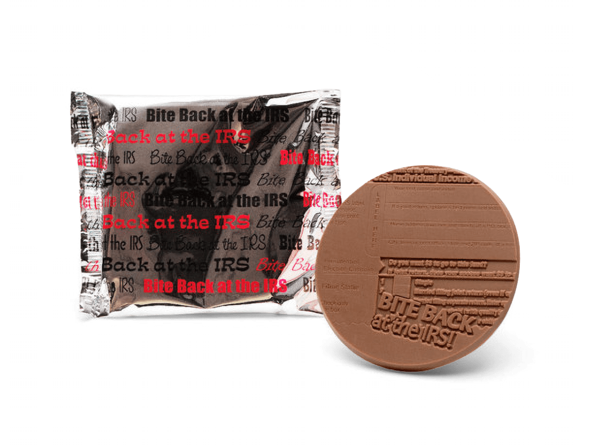 3.2″ Large Milk Chocolate Sugar Cookie – Bite Back IRS – Case of 50